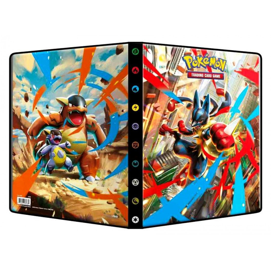 Ultra PRO 9-pocket portfolios for Pokemon trading cards feature a vibrant, full-art cover of Mega Lucario and a back cover of Mega Kangaskhan.